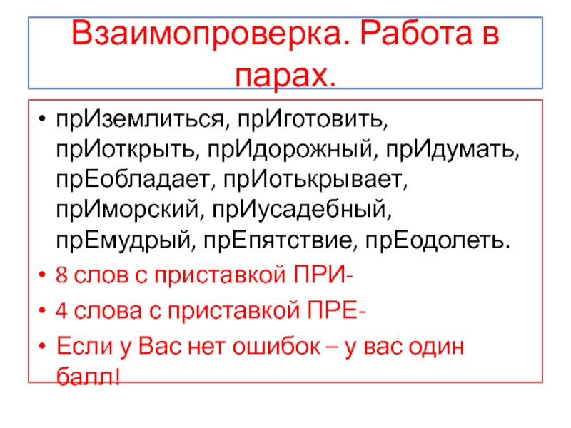 прИземлиться, прИготовить, прИоткрыть, прИдорожный, прИдумать, прЕобладает, прИотькрывает, прИморский,