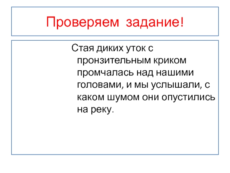 Стая диких уток с пронзительным криком промчалась над нашими головами и мы услышали с каким шумом они опустились на реку.