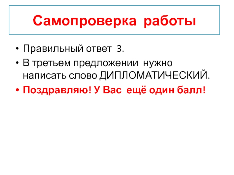 В третьем предложении нужно написать слово ДИПЛОМАТИЧЕСКИЙ.