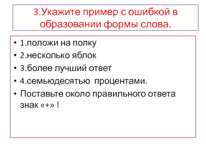 Слайд 63.Укажите пример с ошибкой в образовании формы слова.