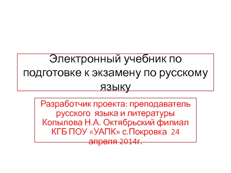 Слайд 1Электронный учебник по подготовке к экзамену по русскому языку
