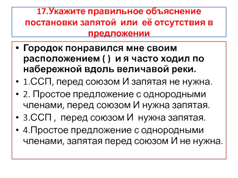 Слайд 2517.Укажите правильное объяснение постановки запятой или её отсутствия в предложении