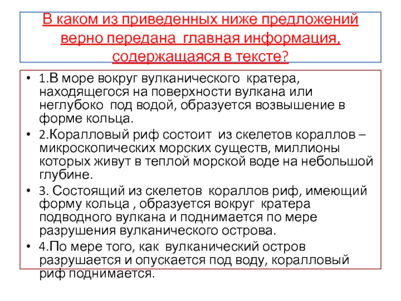 Слайд 27В каком из приведенных ниже предложений верно передана главная информация, содержащаяся