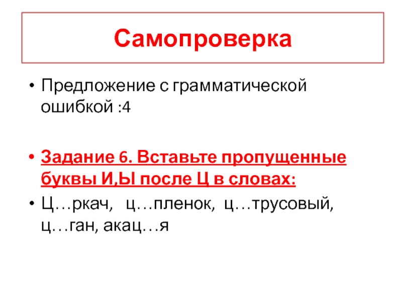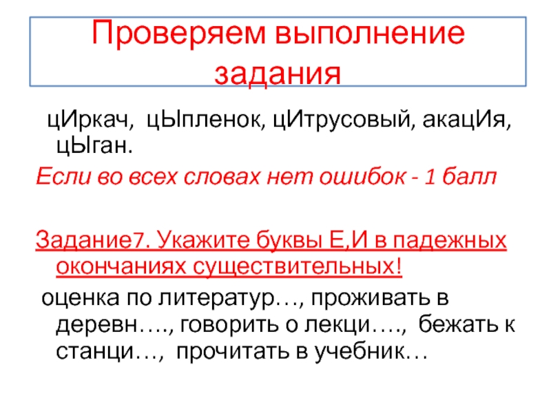 цИркач, цЫпленок, цИтрусовый, акацИя, цЫган.