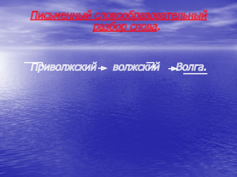Письменный словообразовательный разбор слова.Приволжский   волжский   Волга.