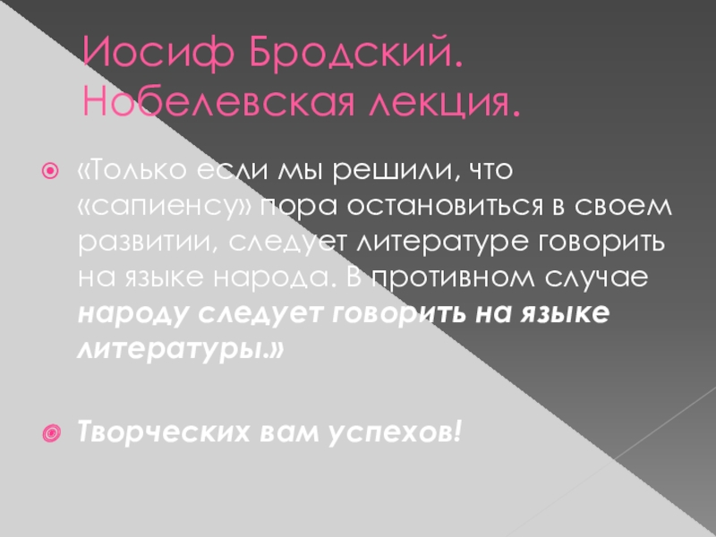 Это сайт презентаций, где можно хранить и обмениваться своими презентациями, докладами, проектами, шаблонами в формате PowerPoint с другими пользователями. Мы помогаем школьникам, студентам, учителям, преподавателям хранить и обмениваться учебными материалами.