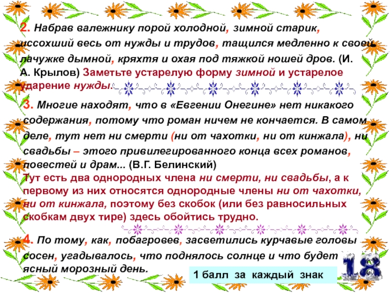 По 1 баллу за каждую запятую.
