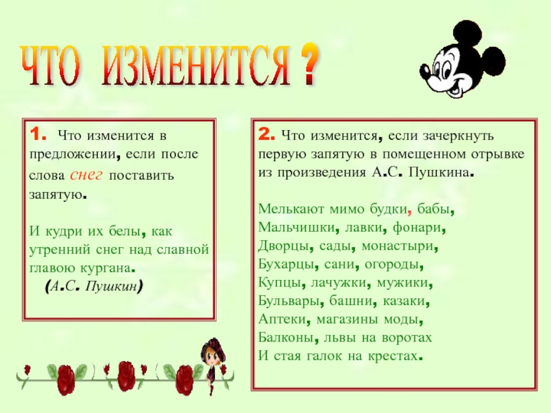 2. Что изменится, если зачеркнуть первую запятую в помещенном отрывке из произведения А.С. Пушкина.