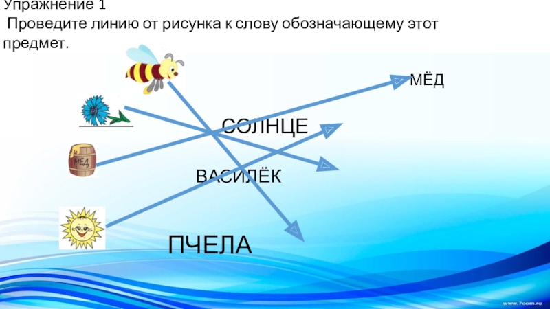 Проведите линию от рисунка к слову обозначающему этот предмет.
