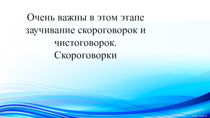 Слайд 13Очень важны в этом этапе заучивание скороговорок и чистоговорок.