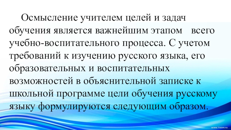 Слайд 3Осмысление учителем целей и задач обучения является важнейшим этапом всего учебно-воспитательного процесса.
