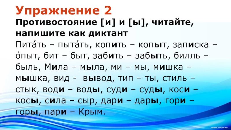 Противостояние [и] и [ы], читайте, напишите как диктант