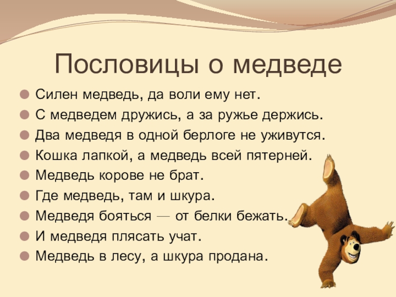 Слайд 7Пословицы о медведе