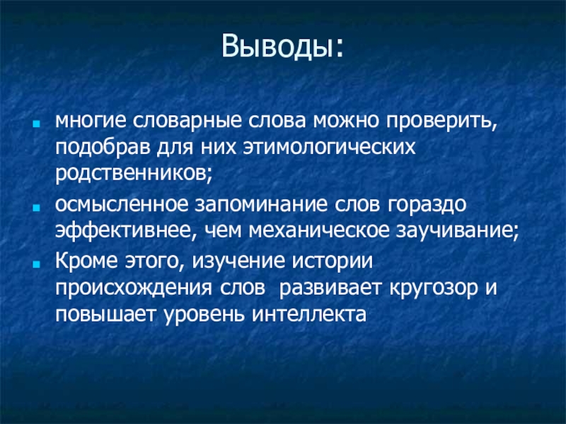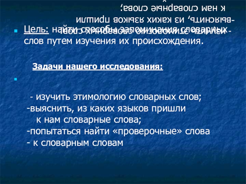 Цель: найти способы запоминания словарных слов путем изучения их происхождения.