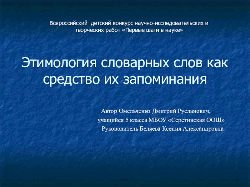 Всероссийский детский конкурс научно-исследовательских и творческих работ «Первые шаги в науке»