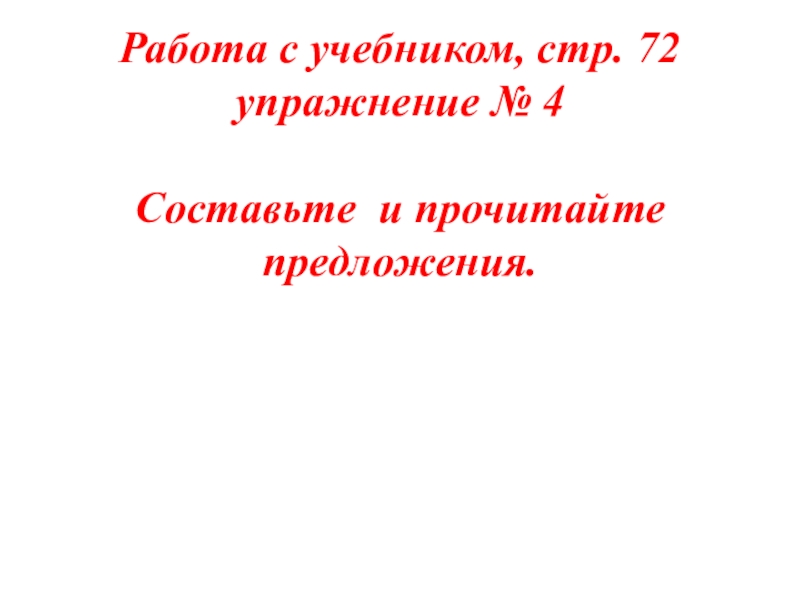 Слайд 12Работа с учебником, стр. 72 упражнение № 4