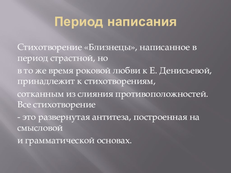время роковой любви к Е. Денисьевой, принадлежит к стихотворениям,