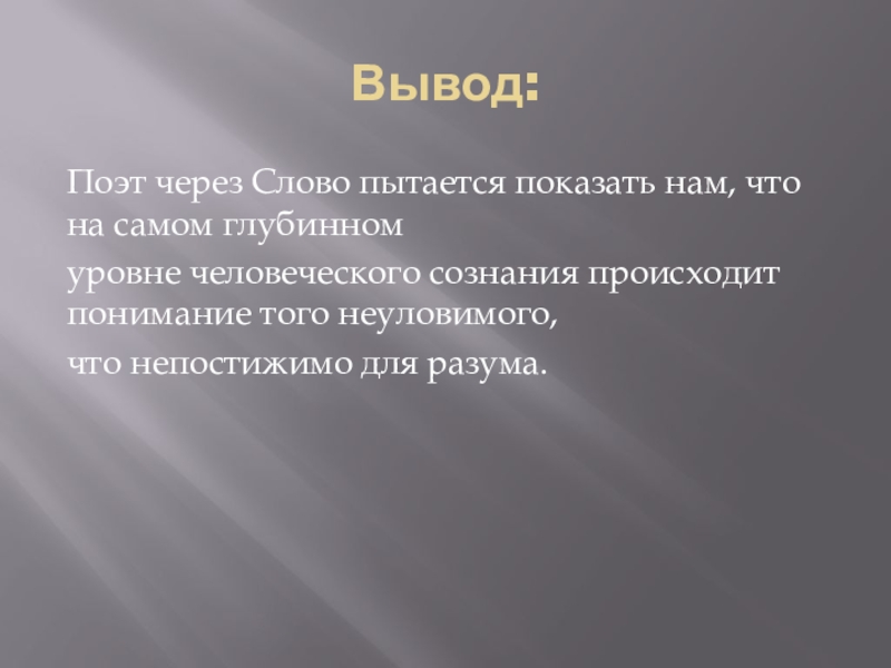 Поэт через Слово пытается показать нам, что на самом глубинном