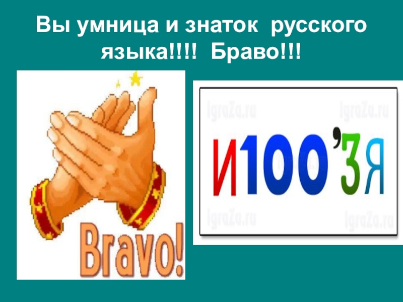Слайд 31Вы умница и знаток русского языка!!!! Браво!!!