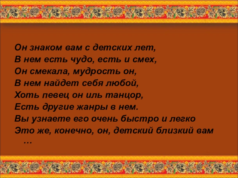 Это сайт презентаций, где можно хранить и обмениваться своими презентациями, докладами, проектами, шаблонами в формате PowerPoint с другими пользователями. Мы помогаем школьникам, студентам, учителям, преподавателям хранить и обмениваться учебными материалами.