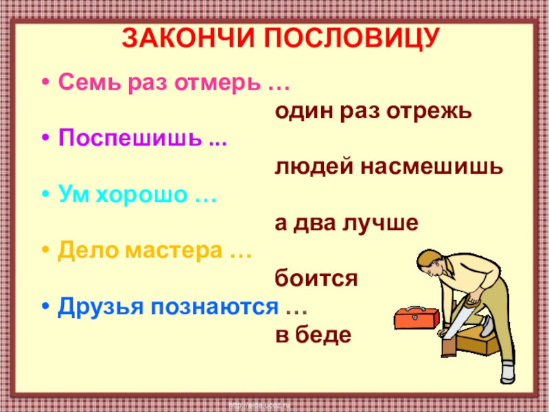 ЗАКОНЧИ ПОСЛОВИЦУ