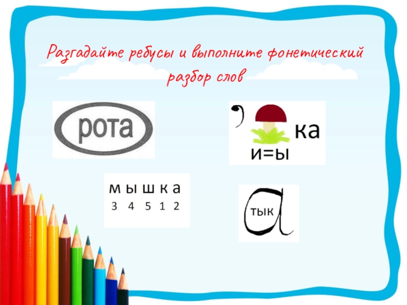 Слайд 12Разгадайте ребусы и выполните фонетический разбор слов