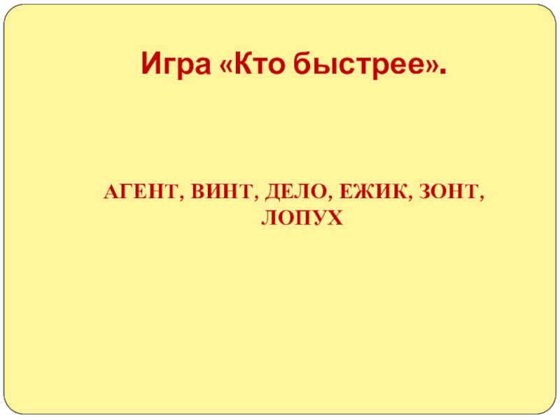 АГЕНТ, ВИНТ, ДЕЛО, ЕЖИК, ЗОНТ, ЛОПУХ