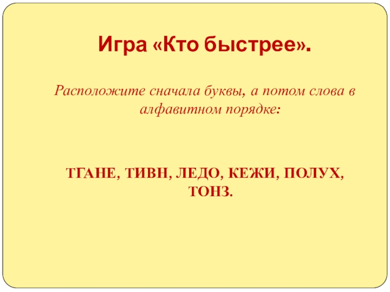 Расположите сначала буквы, а потом слова в алфавитном порядке: