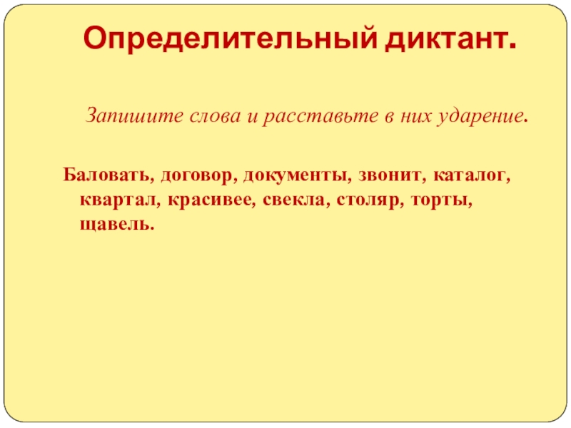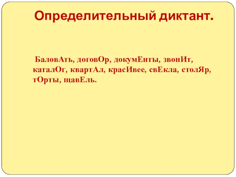 БаловАть, договОр, докумЕнты, звонИт, каталОг, квартАл, красИвее,