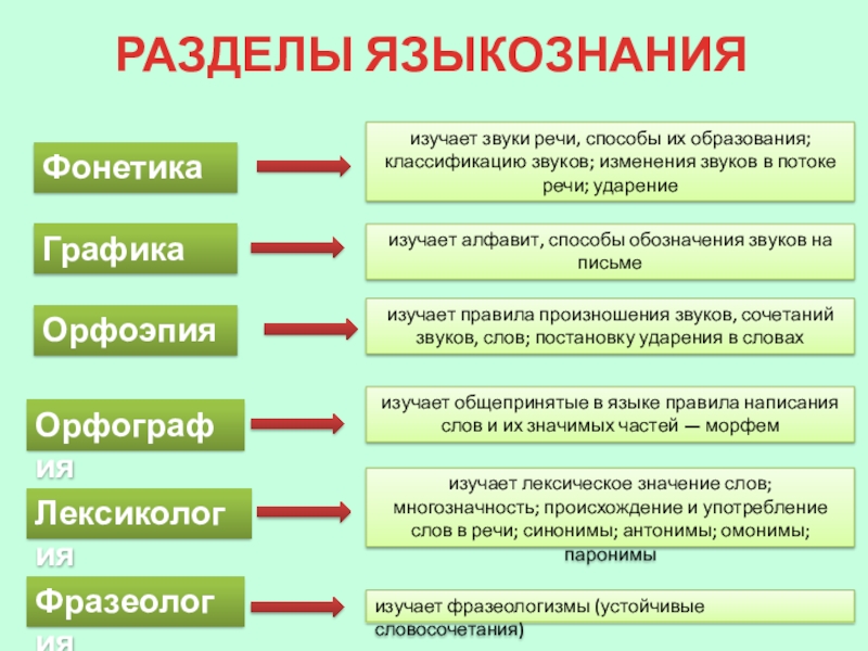 изучает правила произношения звуков, сочетаний звуков, слов; постановку ударения в словах