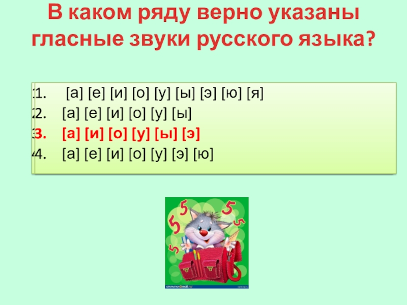 [а] [е] [и] [о] [у] [ы] [э] [ю] [я]