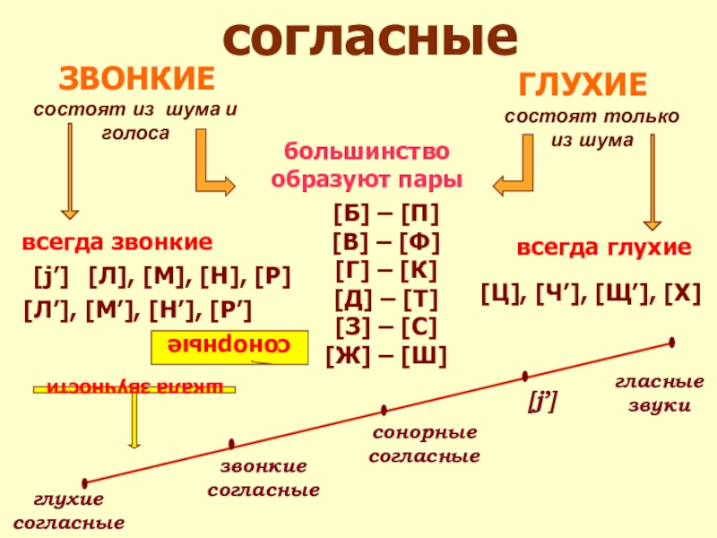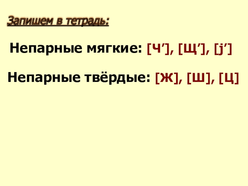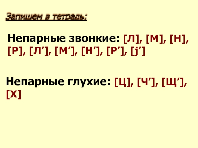 Непарные глухие: [Ц], [Ч’], [Щ’], [Х]