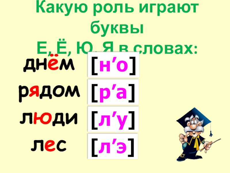 мягкость обозначается гласными буквами Е,Ё,Ю,Я,И или Ь