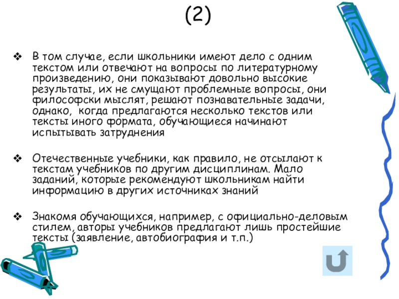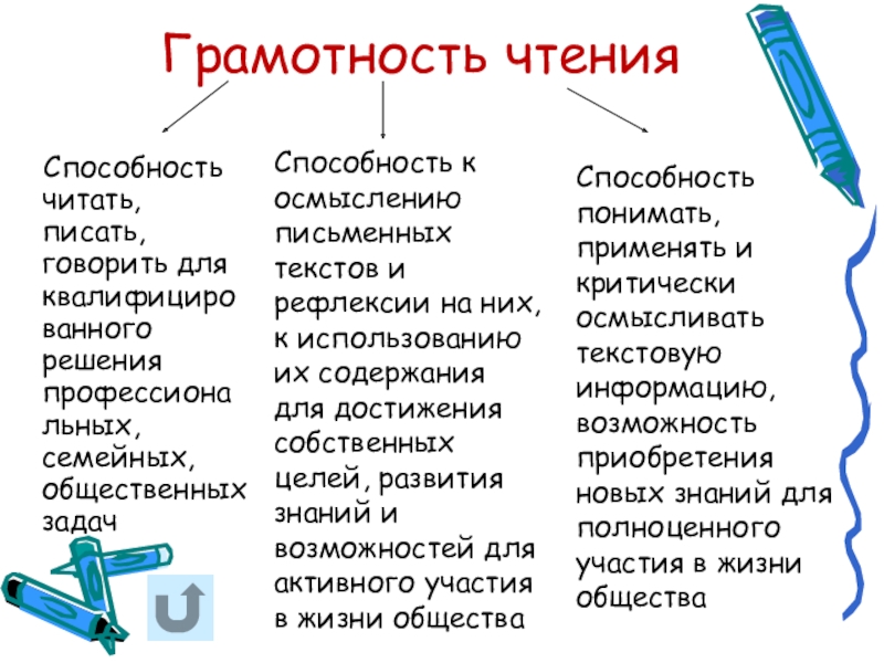 Способность к осмыслению письменных текстов и рефлексии на них, к использованию их содержания для достижения собственных целей, развития знаний и возможностей для активного участия в жизни общества