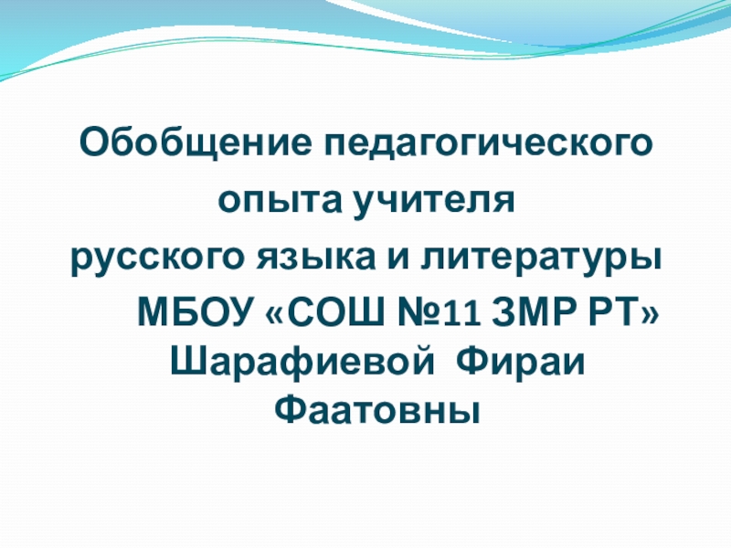 МБОУ «СОШ №11 ЗМР РТ» Шарафиевой Фираи Фаатовны