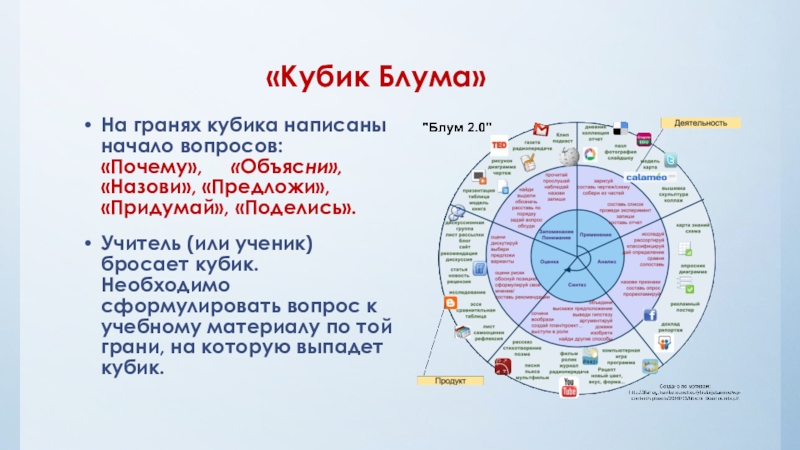 (или ученик) бросает кубик. Необходимо сформулировать вопрос к учебному материалу по той грани, на которую выпадет кубик.