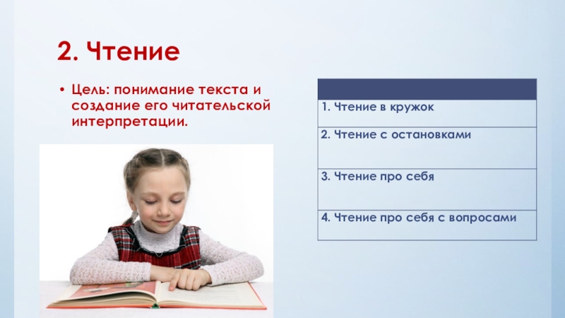 текстовой информации и ее переработка в личностно-смысловые установки в соответствии с коммуникативно-познавательной задачей (А. А. Леонтьев).