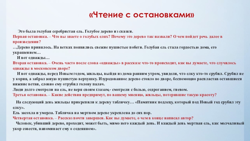 Первая остановка. – Что вы знаете о голубых елях? Почему это дерево так назвали? О чем пойдет речь далее в произведении?