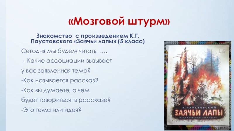 Знакомство с произведением К.Г. Паустовского «Заячьи лапы» (5 класс)