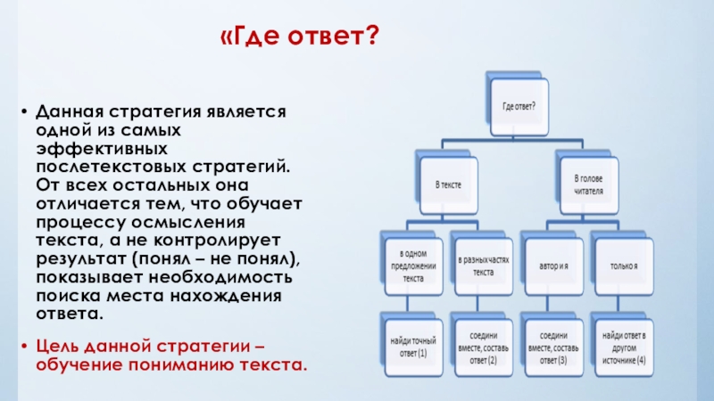 Слайд 20Суть стратегии: учащимся предлагается схема (Где ответ?) и говорится о том,