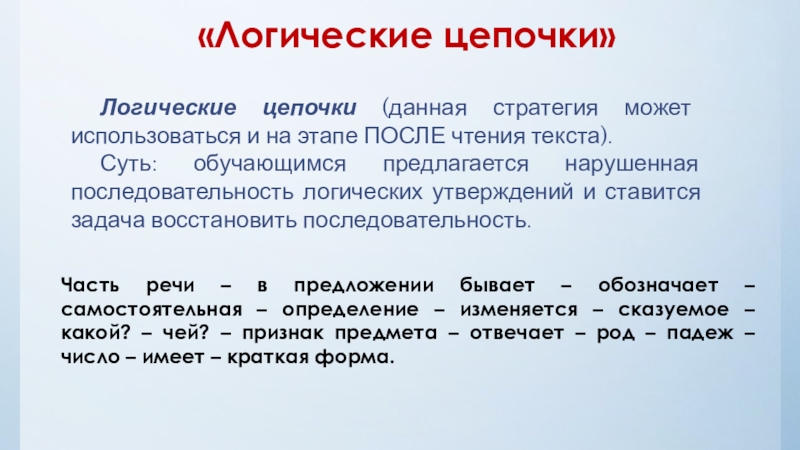 Логические цепочки (данная стратегия может использоваться и на этапе ПОСЛЕ чтения текста).