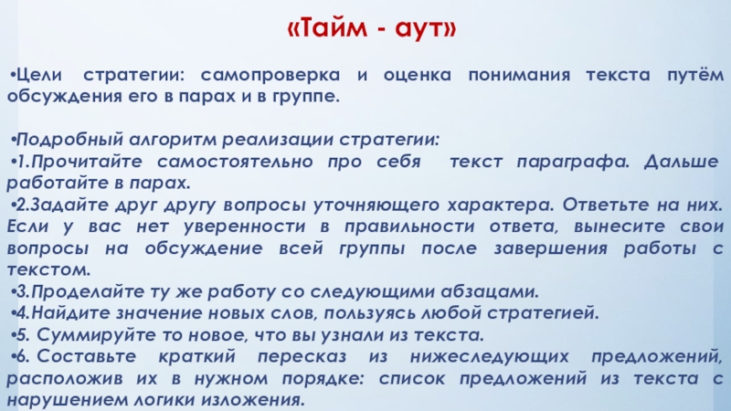 Данная стратегия является одной из самых эффективных послетекстовых стратегий. От
