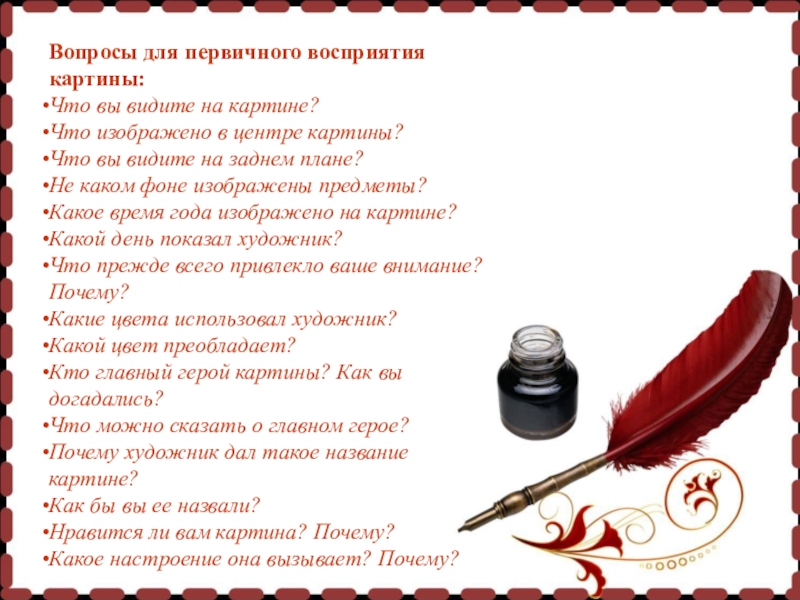 Вопросы для первичного восприятия картины: