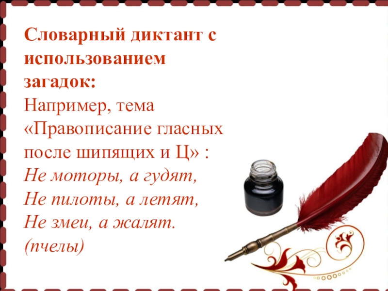 Словарный диктант с использованием загадок: