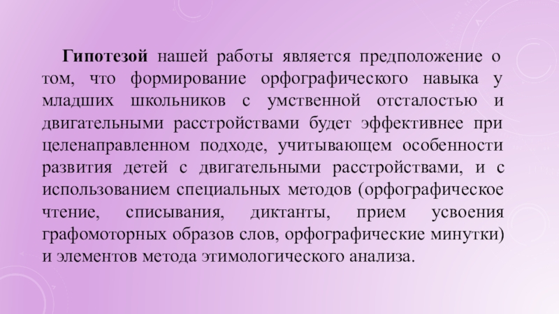 Формирование орфографического навыка на уроках русского языка у умственно отсталых учащихся с двигательными расстройствами