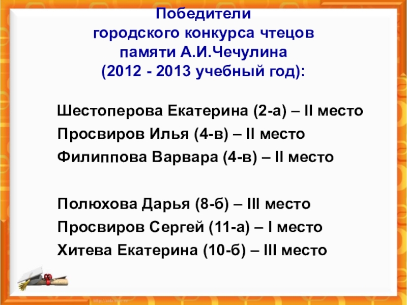 Это сайт презентаций, где можно хранить и обмениваться своими презентациями, докладами, проектами, шаблонами в формате PowerPoint с другими пользователями. Мы помогаем школьникам, студентам, учителям, преподавателям хранить и обмениваться учебными материалами.