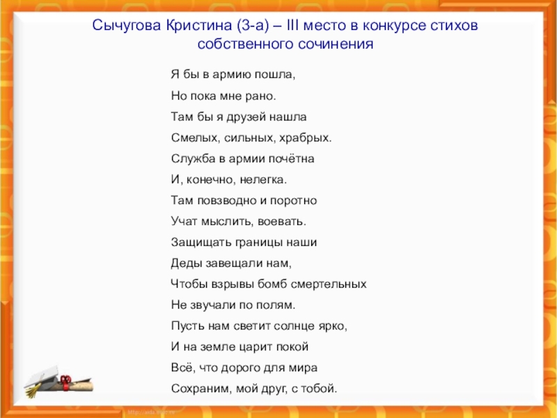 Конкурс стихов собственного сочинения «Есть такая профессия – Родину защищать»