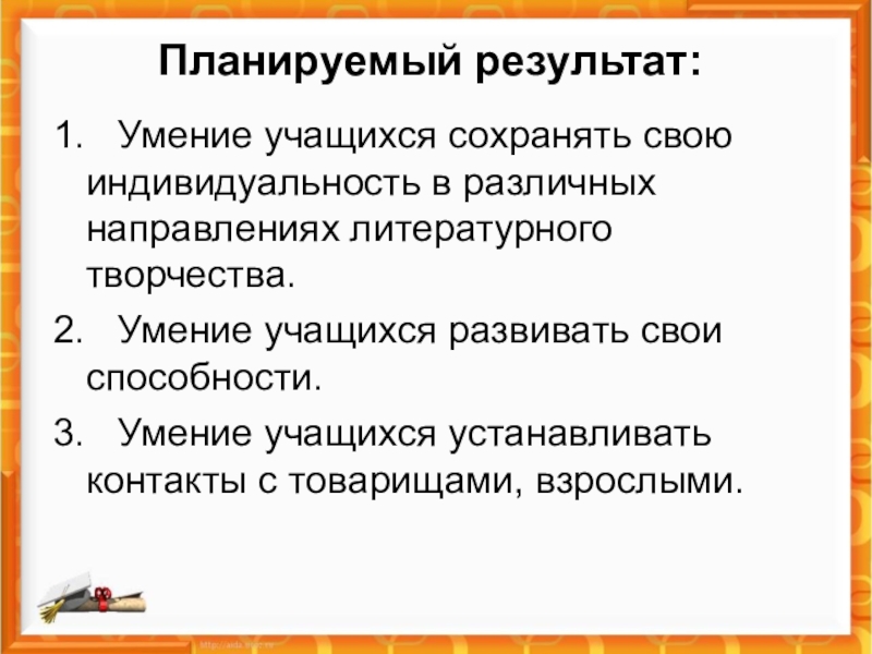 3. Консолидировать усилия педагогов, родителей и учащихся в развитии творческой деятельности учащихся.