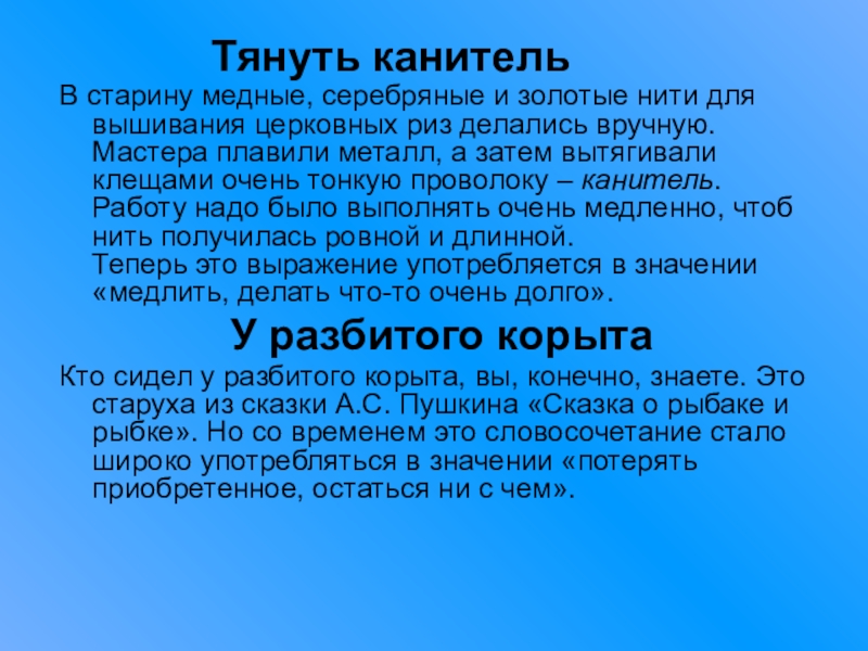 Литературные источники (таскать каштаны из огня; тришкин кафтан)