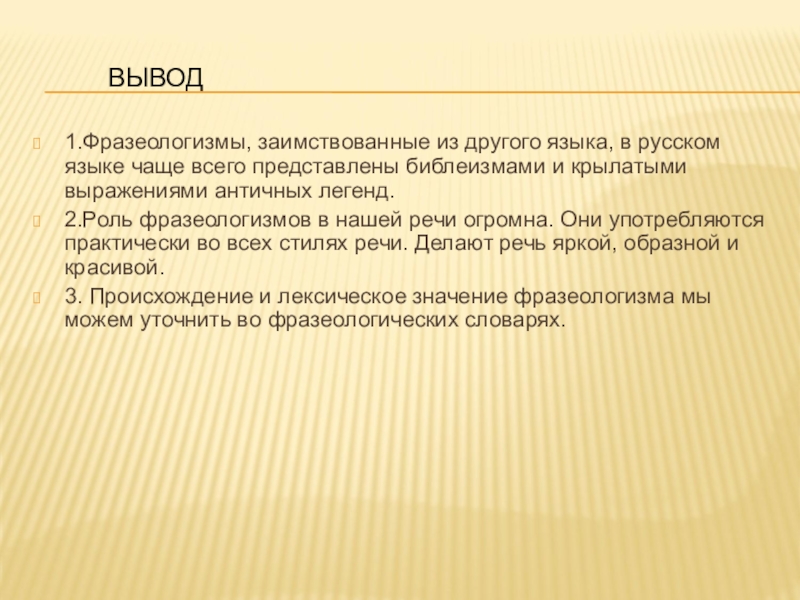 1.Фразеологизмы, заимствованные из другого языка, в русском языке чаще всего представлены